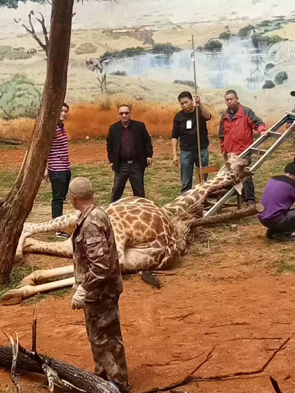 昆明圆通山动物园长颈鹿“海荣”不慎将头卡在树杈上,因颈部受损致脑供血不足而不治身亡。