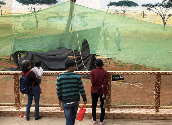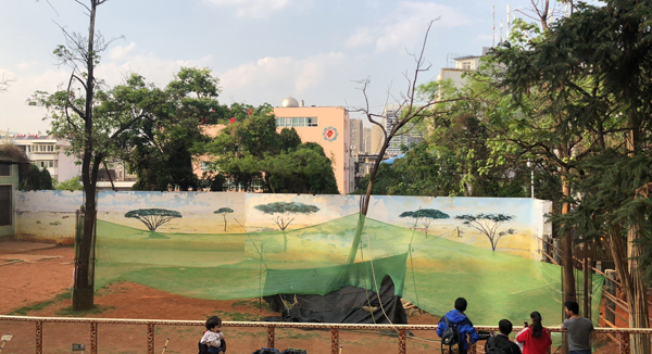 4月16日下午1点25分,昆明圆通山动物园饲养的一头雄性长颈鹿“海荣”在外活动场戏耍蹭痒时,不小心将头部卡在一棵大树的树杈内,饲养人员发现后马上与兽医一同开展救援,最终用电锯将树枝锯断,将“海荣”解救下来。