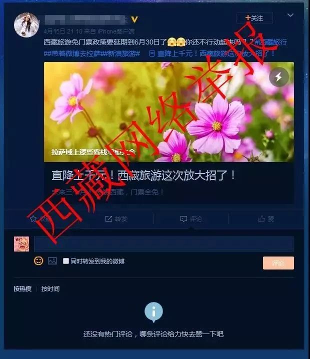 近日,西藏网络举报中心接到一条关于“西藏旅游免门票政策要延期到6月30日了”的举报信息,网友咨询此信息是否真实。