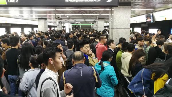 9点53分左右,上海地铁称,目前,人民广场站、南京东路站、龙阳路站等站对换入2号线的客流采取限流措施;地铁正在积极抢修中,运营恢复仍需一定时间。