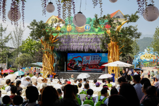 经常为小朋友们带来精彩节目的布谷鸟舞台,也回归了大自然的怀抱。整个舞台被果实累累的梦幻古树包围。孩子们围坐在舞台边,如同置身仙境森林。而舞台中央的演唱乐队和跳舞精灵,仿佛就是森林里的原住民。
