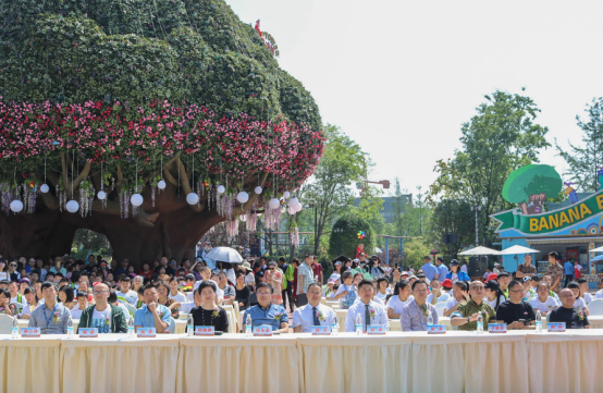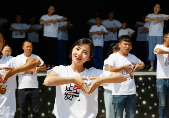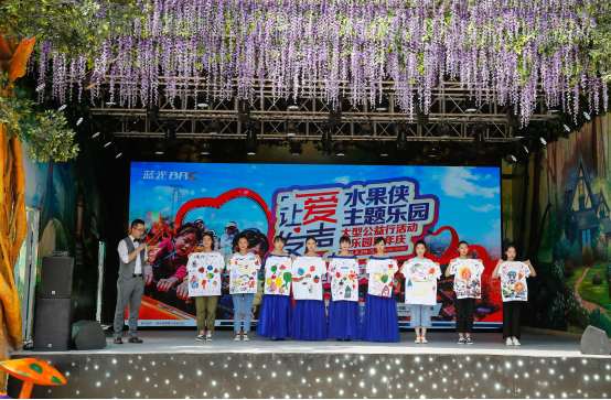 在庆典上,舞蹈演员与水果侠星球员工们一起跳快闪舞蹈,通过舞蹈呼吁游客关注特殊儿童群体,给他们更多关爱。都江堰水果侠星球还牵手都江堰市中国海外新建特殊教育学校,邀请部分特殊儿童到乐园参加周年庆.