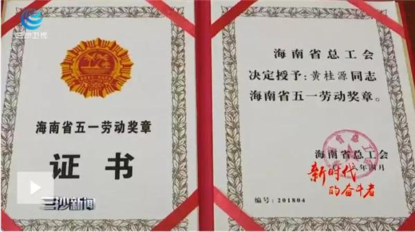 2015年、2017年,黄桂源被评为“海南最美农民工”提名奖。