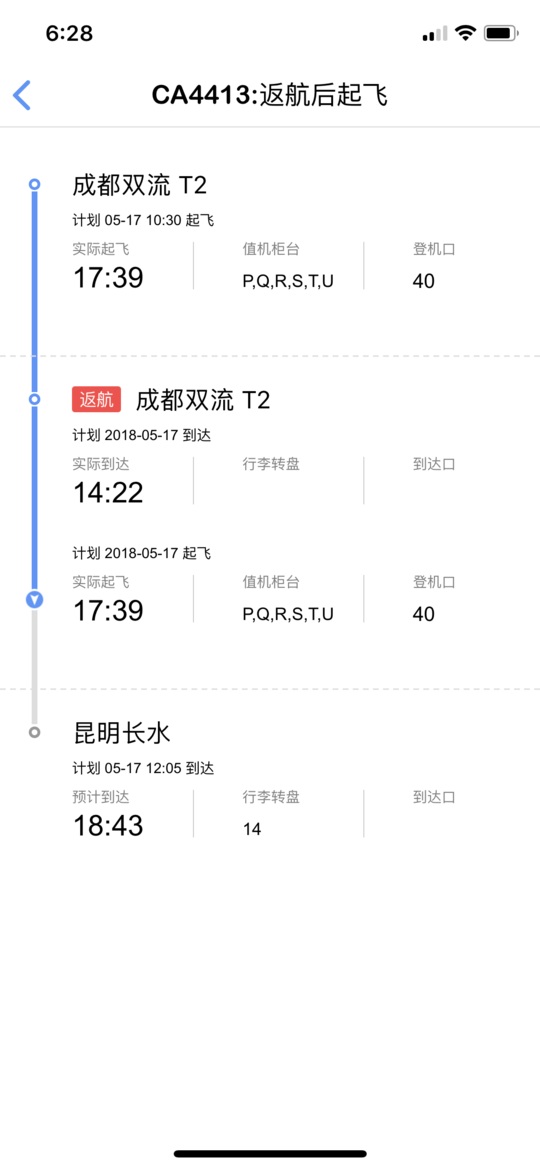 今日14:22国航CA4413成都至昆明航班因起落架原因返航成都。据悉,CA4413航班在飞往昆明时,起飞约10分钟后,发现起落架无法收回,于是返航降落成都。