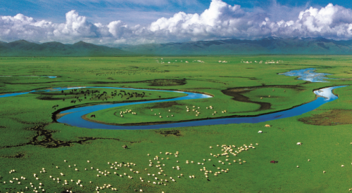 黄河从巴颜喀拉山发源,一路浩浩荡荡东下,在甘南玛曲县形成了一个423公里的“天下黄河第一弯”,形成了许多壮丽的自然景观、孕育出了诸多引人入胜的民族风情和人文景观:七仙女峰、西麦朵合塘、采日玛灌木林、贡赛尔喀木道、格萨尔发祥地玛麦哲木道、首曲第一桥等独特秀美的草原生态旅游景区。这块宝地曾被十一世班禅大师题词为“天下黄河第一弯·格萨尔发祥地兴旺发达”。
