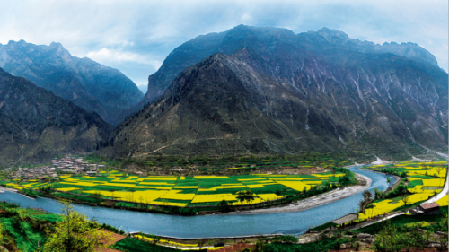 跌宕起伏的白龙江在长江与黄河的分水岭上,完美勾勒出迭部大峡谷的磅礴身躯和舟曲小江南的靓丽姿颜。