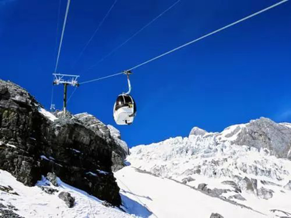 据介绍,游客到玉龙雪山冰川公园游览,主要乘坐玉龙雪山旅游索道(简称:大索道),大索道下部站海拔3356米,上部站海拔4506米,索道斜长2980米,垂直高差1150米。