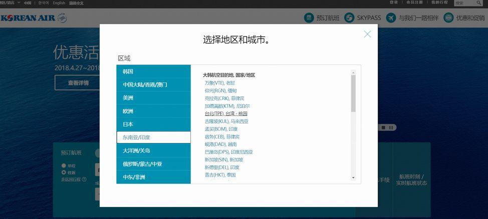 其中比较让环环不能忍的是大韩航空, 你说你把台湾和中国分列就算了,还把台湾归入“东南亚/印度”区域是几个意思……
