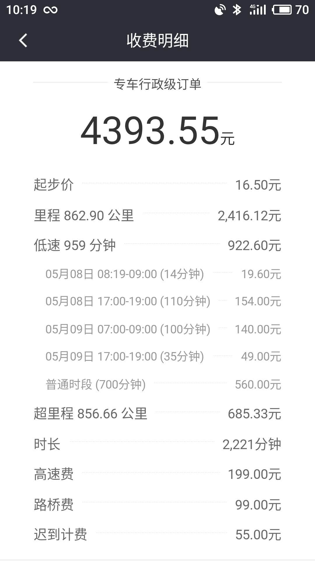 5月8日,来自浙江的滴滴专车司机李先生接到了一个从温州到杭州的订单,下单人自称房产营销人员,下单是为了给客户乘坐,到达目的地后,下单人要求继续用车,一直在各个楼盘看房,5月9日下午启程回温州。返程时,下单人没有一起回来,再联系时说账单需要公司报销,迟迟没有支付,订单总额有4393.55元,此外因为系统限制,还有167元高速费没有加上。