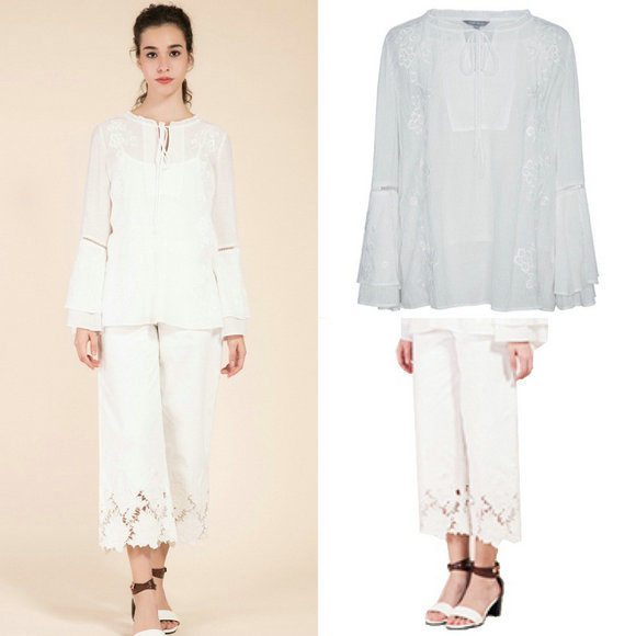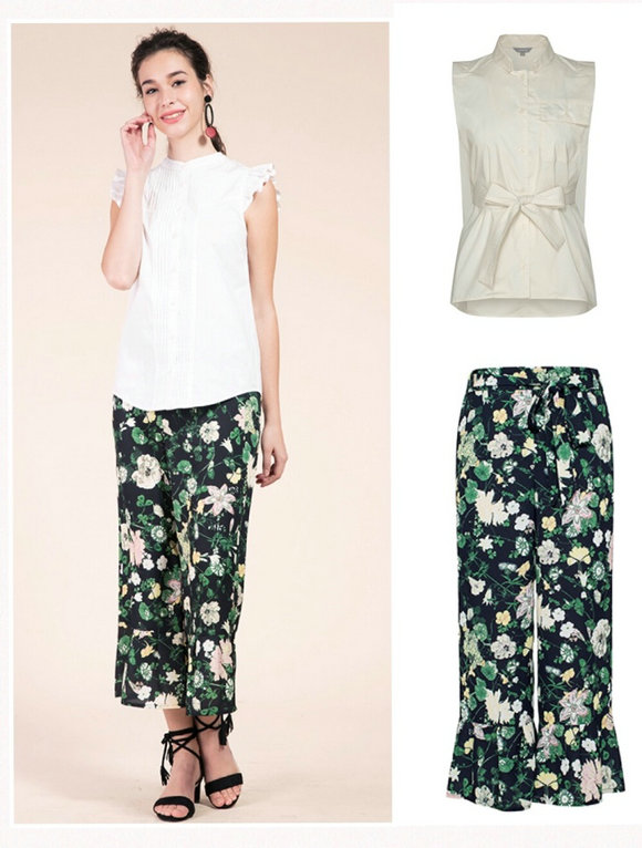 如此美丽的景色下,简单白色无袖上衣配以绿色的花朵裤子,就如同夏威夷岛带给我们炙热、强烈的情感。