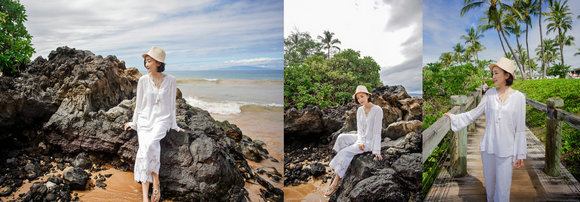 在炎热的毛伊岛,穿一袭干净的白色,不免让人感觉一丝丝的凉意,别具一般风情。