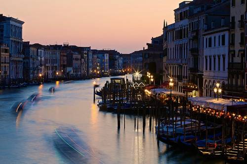 资料图片:这是2017年3月29日在意大利威尼斯拍摄的华灯初上的威尼斯运河。新华社记者金宇摄