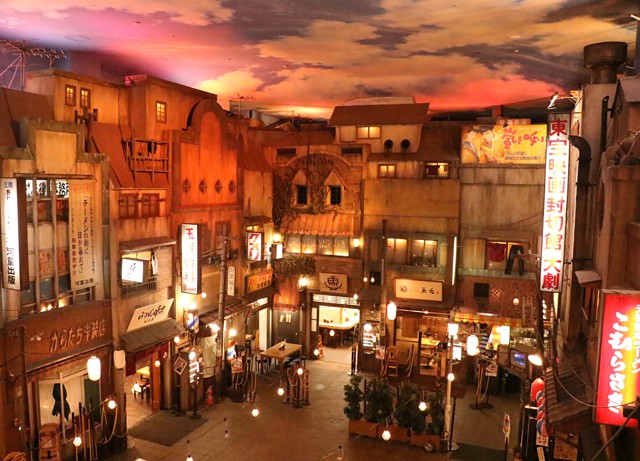 地下1层和2层排列着从日本全国各地严格选拔的9家拉面店、以及与复古街道相符的香烟店、传统点心店等,让游客仿佛瞬间穿越回1958年的日本。粗点心店是昔时孩子们的社交所,让很多日本人回忆起儿时购买这种点心时的情景。放学回家途中,三五成群聚在一起,这种“孩童社交场所”得以在此重现。店内密密摆放着300多种点心和玩具,不仅是孩童,连大人也兴奋不已。中央广场则会不定期举办纸戏、石头剪刀布比赛等各种活动,即便只是流连其中也有许多乐趣。