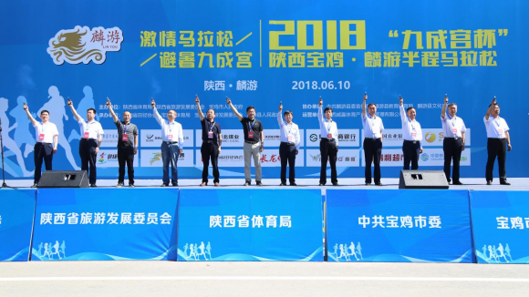 6月10日上午,激情马拉松,避暑九成宫——2018“九成宫杯”陕西宝鸡·麟游半程马拉松赛在宝鸡麟游县青莲山广场鸣枪开赛。赛事由陕西省体育局、陕西省旅游发展委员会、宝鸡市人民政府主办,陕西省田径协会、宝鸡市体育局、宝鸡市旅游发展委员会、麟游县人民政府承办,中共麟游县委宣传部、麟游县教育体育局、麟游县文化广电局协办,陕西威赢体育产业投资管理有限公司运营。