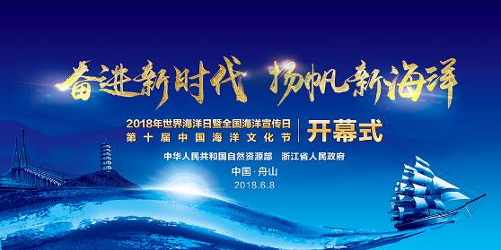 2018年世界海洋日暨全国海洋宣传日·第十届中国海洋文化节主场活动,于6月8日至10日在舟山市举办,本届大会由中华人民共和国自然资源部、浙江省人民政府主办,舟山市人民政府、浙江省海洋与渔业局、中国海洋报社、国家海洋局宣传教育中心、中国海洋发展基金会联合承办。这也是浙江省首次承办世界海洋日暨全国海洋宣传日主场活动。