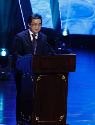 大会随后颁发了国际海洋使者以及2017年度海洋人物,并由充分展现舟山特色和海洋文化特质的文艺表演,组成了一台别开生面的盛会,包括展示全国非物质文化遗产舟山锣鼓的《鼓舞大海》、跨界民乐新奏《蜂飞》、主题舞蹈《海上丝路》和全新改版歌曲《感恩海洋》。开幕式在新生代男歌手张阳阳、内地流行女歌手洪辰的歌声中落下了帷幕。这是一台以海洋文化为依托,展现东海吾土吾民生存状态的一部乐戏,展示海岛人朴实豪爽、热情奔放的性格特征以及勇立潮头、敢为人先的精神风貌,以鼓为声打造一张能够代表舟山海洋文化的艺术名片。