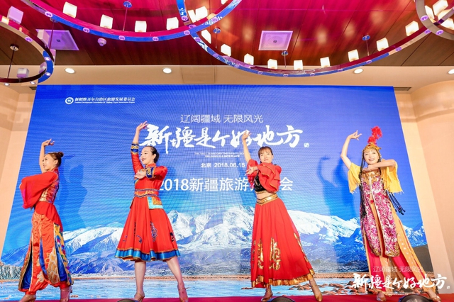 这是6月15日上午在北京国际会议中心召开的以“辽阔疆域、无限风光,新疆是个好地方”为主题的新疆旅游推介会的现场,吸引了来自北京旅游业及相关业界的代表和旅行商嘉宾。