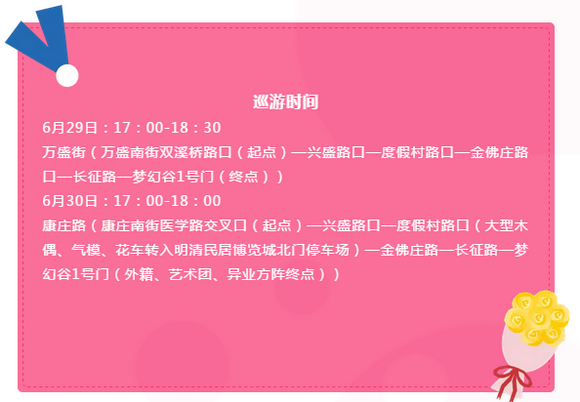 小镇影视巡游大狂欢:6月29日(万盛街)、6月30日(康庄路),每天17:00-18:30