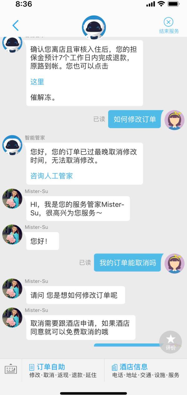 艾女士称,当日上午11时许,她联系携程网客服申请退房,但客服回复称,艾女士预定的酒店类型,在确定订单之后,便“不可取消”,如果要退订,需要和酒店协商,若酒店同意退款即可退订。