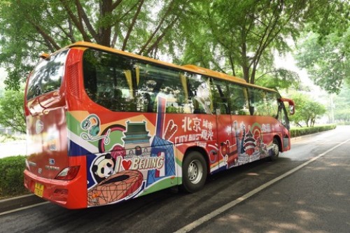 打造一张“名片”, 大巴车作为“颜值担当”可不能太“随意”!为了响应绿色环保的理念,也因作为北京的“迎客大使”,在北京中心城区场地和充电设施仍然比较紧张的条件下,赛笛芭诗坚持选择了新能源纯电动巴士。尾气、泥垢、噪声、颠簸的减少,大幅提高了游客的乘坐体验。同时,赛笛芭诗为红色的观光巴士专门描画了传统元素与现代笔触结合的涂装外观,穿梭大街小巷,与活泼靓丽的街景相映成趣,试运行阶段就吸引了很多游客“合影”。如果游客有幸坐在观光巴士最靠前的座位,配以深度讲解,就能以最佳视角体会浓缩了北京精华景点的“一日游”,即使只有一两天也能说“来过北京,不枉此行”。
