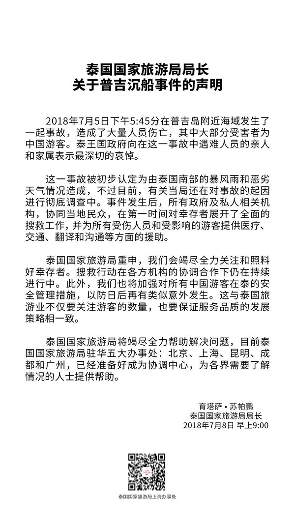 泰国国家旅游局局长:加强对所有中国游客在泰的安全管理措施