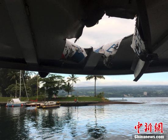 被熔岩击中的船只顶棚被击穿,留下一个大窟窿。本文图片均来自中新网