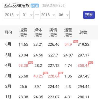 (2018年1-6月麗枫的迈点品牌指数MBI排名变化趋势)