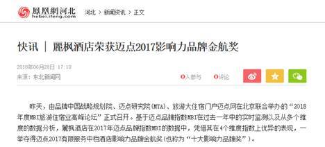 在媒体指数维度,2018年3月麗枫斩获中国饭店金马奖“中国最受消费者欢迎中端连锁酒店品牌”、2018年6月斩获“迈点2017影响力品牌金航奖”,这些奖项使得麗枫的搜索频次增加,也获得ZAKER新闻、网易、迈点网、环球旅讯的报道,除此之外,麗枫的迅速扩张和产品的发布都吸引各方媒体的集中传播,也引起酒店行业对其持续关注。