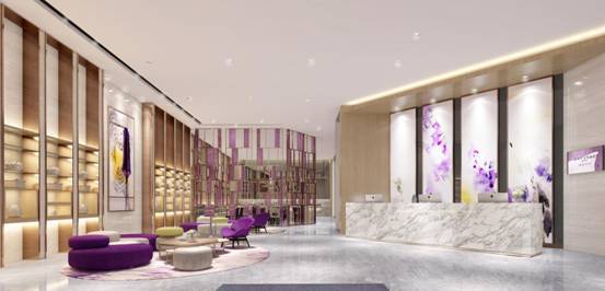 于是2017年,麗枫推出升级的2.0版本酒店,在原有基础上进行提升,保留浪漫“麗枫紫”的同时增加辅助色,品牌视觉识别体系优化,融入麗枫独有的薰衣草DNA,着力深化打造的自在舒适体验,整体设计更具亲和力,以抽象的艺术形式呈现薰衣草花海,深化无压空间感,赢得消费者的喜爱。