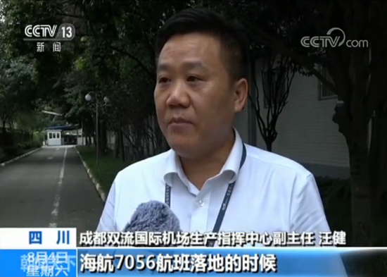 成都双流国际机场生产指挥中心副主任 汪健:大量接受备降航班,(凌晨)2点11分的时候,海航7056航班落地的时候双流机场的正常机位、备降机位、临时机位已经饱和。为了确保旅客的安全,我们是把这个航班安排在了D滑(行道)上临时等待。按照民航局的相关规章制度,(飞机)在滑行道上,为了确保旅客安全,是不能进行上下客保障的。