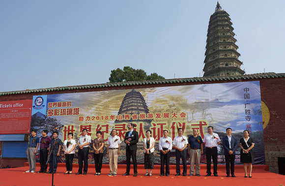 2018年8月29日,广胜寺景区“世界最高的多彩琉璃塔”世界纪录认证活动在洪洞广胜寺景区隆重举行。