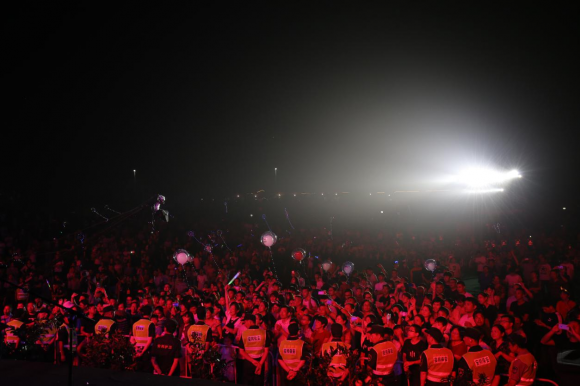 赖总的致辞引起了现场果农们的共鸣,当第一支乐队4U登场之后,朋克风格的摇滚音乐一下子将气氛推向顶点,现场的年轻人与孩子们都不由自主地跟随音乐挥舞着手臂,一起跳着,荧光棒与闪光灯交织成了这个夜晚最绚烂的景象。