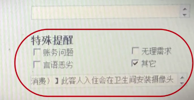 今年8月31日,辛先生到广州出差,入住了广州一家桔子水晶快捷酒店,该酒店与全季酒店同属华住会旗下酒店,在辛先生入住时,该酒店前台工作人员告诉辛先生,在酒店登记信息的页面上,辛先生在“特殊提醒”一栏中,被标注为“此客人入住会在卫生间安装摄像头取证”。辛先生随后发现,该工作人员所说内容属实。