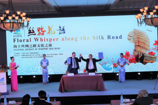 作为海丝申遗的牵头城市,广州此前已同国内24个城市共同组建海丝保护和联合申遗城市联盟,并签署了《海上丝绸之路保护和联合申报世界文化遗产城市联盟章程》。 “丝路花语-海上丝绸之路文化之旅” 系列推介活动在各站亮点不断,这拉近了广州与科伦坡、吉隆坡、尼科西亚的关系。广州与三个城市的代表分别签署了《关于海上丝绸之路文化遗产合作保护和成果共享的合作备忘录》,实现海丝沿线城市和地区文化遗产的共同活化繁荣。