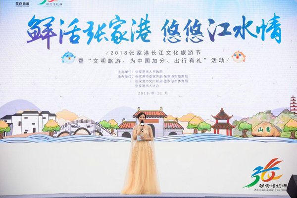 为响应国家文化和旅游部关于“文明旅游 为中国加分 出行有礼”百城联动活动倡议,张家港始终把文明旅游作为培育和践行社会主义核心价值观的重要抓手,注重“文明与旅游同行”,通过此次活动让大家共同感受长江文化和张家港旅游的魅力,也让文明旅游意识更深入人心,为文明旅游加油助力。开幕式现场发布了“为中国加分、出行有礼”宣传片,通过张家港旅游吉祥物小河豚和皮皮鲨的旅游故事,用动画的形式更生动有趣的让大家了解到如何做一名文明游客。