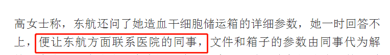 相反,东航的工作人员本着认真负责的态度不断外呼请求医院方面给与及时的配合,以保证造血干细胞的运输拯救病人的生命。俗话说“磨刀不误砍柴工”,为什么一家有多次运输经验的医院“刀”要磨这么久?