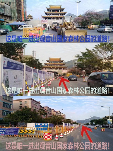 据景区相关负责人透露,进入观音山景区大门口的主要通道全路段开挖施工,且从施工到完工并没有具体时间答复,同时也没有任何部门与观音山景区接洽协调对接,目前未正式施工已经严重影响景区旅游安全接待,如果正式堵路施工,车辆与游客进出观音山景区就非常艰难。马上元旦春节将至,每天几万来自全国各地的游客到观音山公园观光、游览,这种情况会造成严重后果,极度影响广大市民、游客的安全出行。