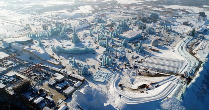 有飞檐精巧的中式亭台,也有满浸欧式风格的城堡楼阁,恢弘的园区将属于冰雪的艺术赋予每一座景观,向游客展示了独一无二的景致。