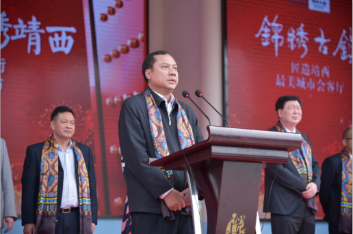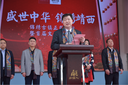 仪式由靖西市委常委、市政府常务副市长谌宏军主持,百色市委常委、靖西市委书记钟恒钦宣布锦绣古镇正式开街。