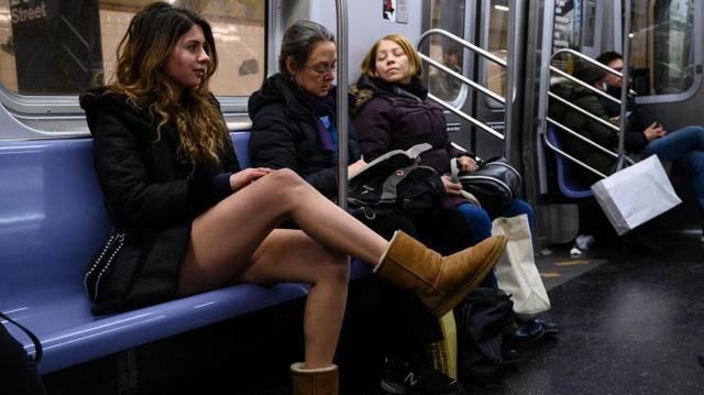 多伦多是第五届无裤日,参加者大多接近20岁或20出头,一百多人下午3时在一处地铁站出现,进了车厢,列车开动,他们开始脱裤。有个妈妈看见这个景象,睁大了眼睛,和女儿一块咯咯笑。