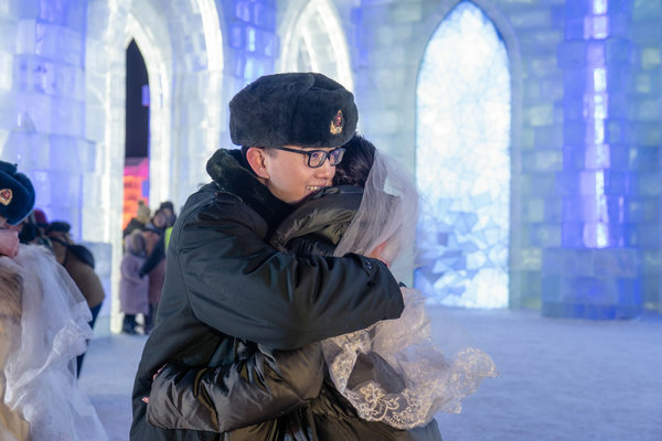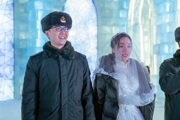 1月25日,冰雪大世界内举办了一场极为特别的婚礼,军人夫妇们在冰雪的见证下许下承诺,正式成为夫妻。