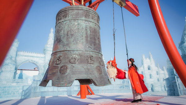系绸祈福后,敲响世纪之钟才算完成仪式。世纪之钟代表着新世纪的开始,也是冰雪大世界的起点。它敲响于新世纪来临时,是城市筑梦开始的重要象征,见证了冰雪大世界二十年的历程。