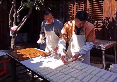 正值年前,古镇上的年味也越来越浓,随着打年糕的声音传来,一股糯软的香味也飘荡在古镇上空。