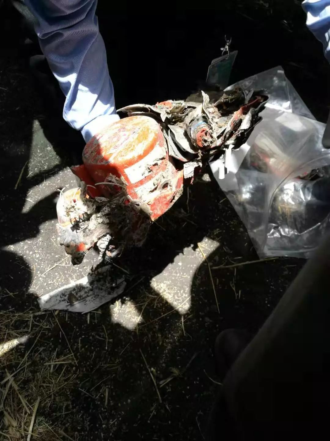 ▲这是3月11日在埃塞俄比亚首都亚的斯亚贝巴附近拍摄的救援人员找到的失事飞机黑匣子。(新华社发)