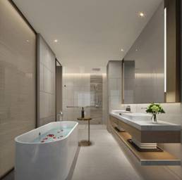 大堂-设计感与艺术感交融:进入大堂,熟悉的薰衣草香隐约浮现。眼前,整体原木色泽与光影配搭,前台背景墙上的薰衣草花瓣与摇曳的吊灯交相呼应,柔和,安静。浮躁的心,也渐渐被抚慰。