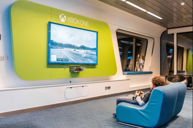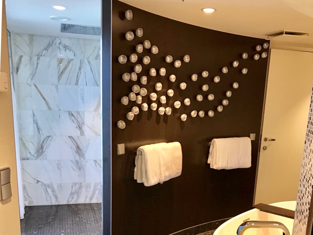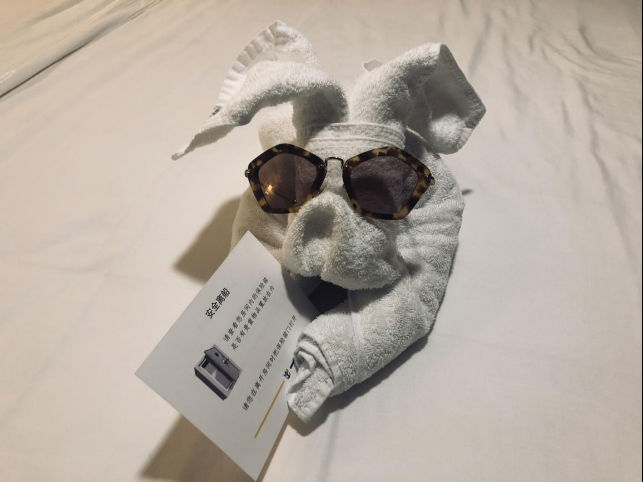 客房的设计将舱内空间用到极致,在影音室中还配有一张沙发床,夜间管家会铺成一张双人床。即使住上六个人在这个房间也不会觉得拥挤。特别贴心的是,在晚间开夜床的时候,管家会把毛巾跌成各种形状的小动物,且每天都不重样,次日的航行安排也会放置在床上。