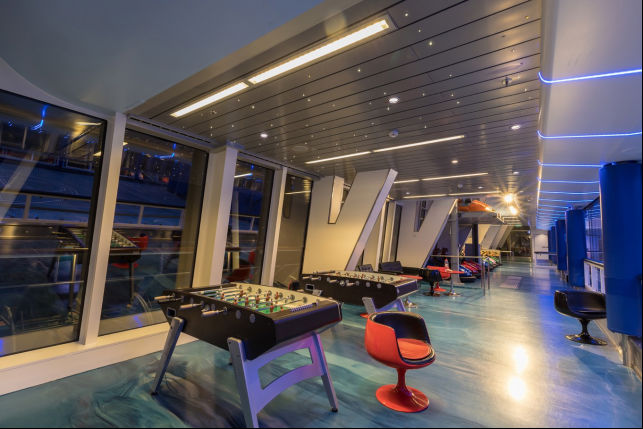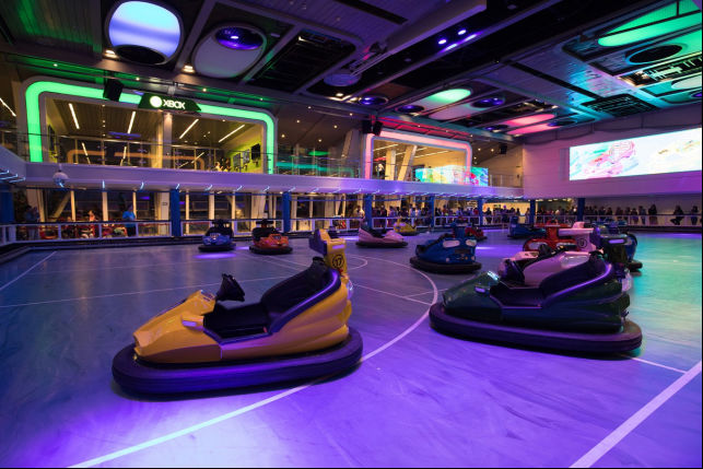 在海洋量子号的15层甲板上建有一个海上多功能运动馆,里面配有众多适合家庭成员共同体验的玩乐项目,诸如碰碰车、乒乓球等设施供你选择。
