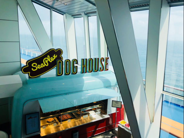 在海上多功能运动馆里,还有一家DOG HOUSE,提供风靡芝加哥、纽约、迈阿密等地的香肠和热狗,让你在打球玩碰碰车之余都能及时的补充能量,躲也躲不过,船上真的到处都是好吃的地方。