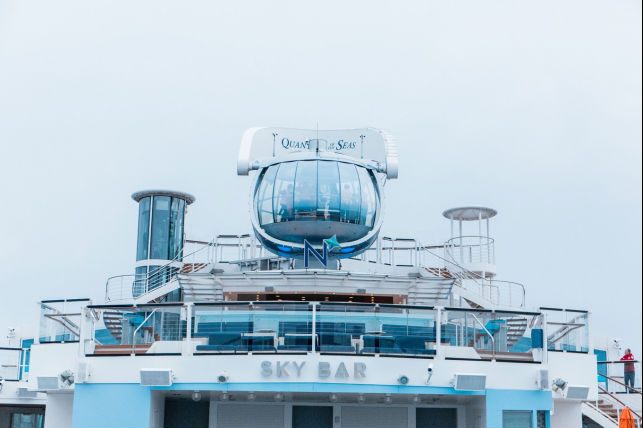 在白天可以从鸟俯的角度观看到海洋量子号的全景以及那一望无际的蔚蓝海面,