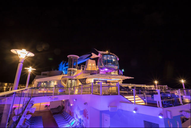 而晚上也能观赏到海洋量子号上璀璨夺目的灯光,它也将成为茫茫大海中最璀璨的霓虹。